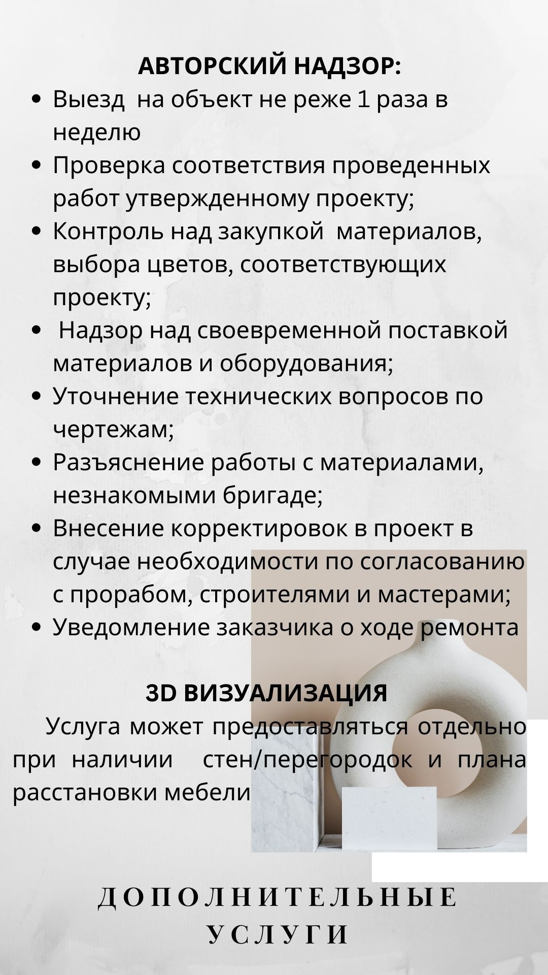 Все, за что я берусь - я делаю с душой. Я постоянно учусь и совершенствую свои знания и навыки, слежу за новинками и тенденциями в дизайне интерьера и при этом прислушиваюсь к пожеланиям заказчика.